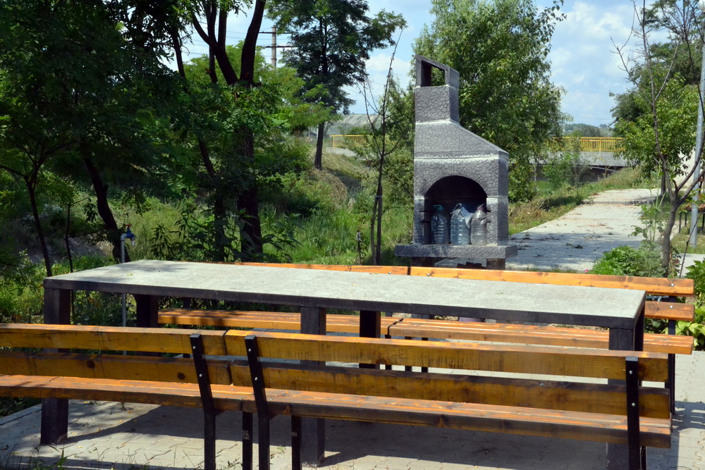 Câteva bănci, trei grătare (nişte construcţii ciudate, subdimensionate, din bolţari în care ţin locuitorii recipiente din plastic cu apă, semn că aceasta nu e tocmai la discreţie şi e nevoie de provizii) care seamănă mai mult cu nişte monumente funerare şi trei platforme pentru gunoi, adică nişte ziduri după care sunt ascunse tomberoanele, toate plantate pe o poiană pârjolită, reprezintă zona de agrement de 9.489 mp (!?).