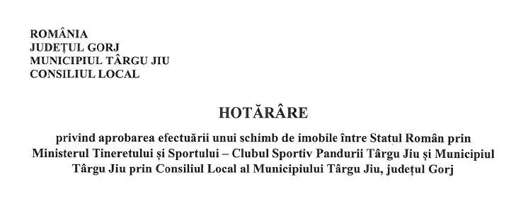 După ce au demolat câteva părți din stadion, cu chiu, cu vai, edilii și-au dat seama că restul sunt administrate de Ministerul Tineretului și Sportului. Ca să înceapă lucrările, toată locația trebuia predată de Primărie către Compania Națională de Investiții. Dar cum să demoleze ceea ce nu aveau? Abia în 7 septembrie a.c., fostul ministru Ecaterina Szabo vine la Târgu Jiu să descâlcească această situație.
