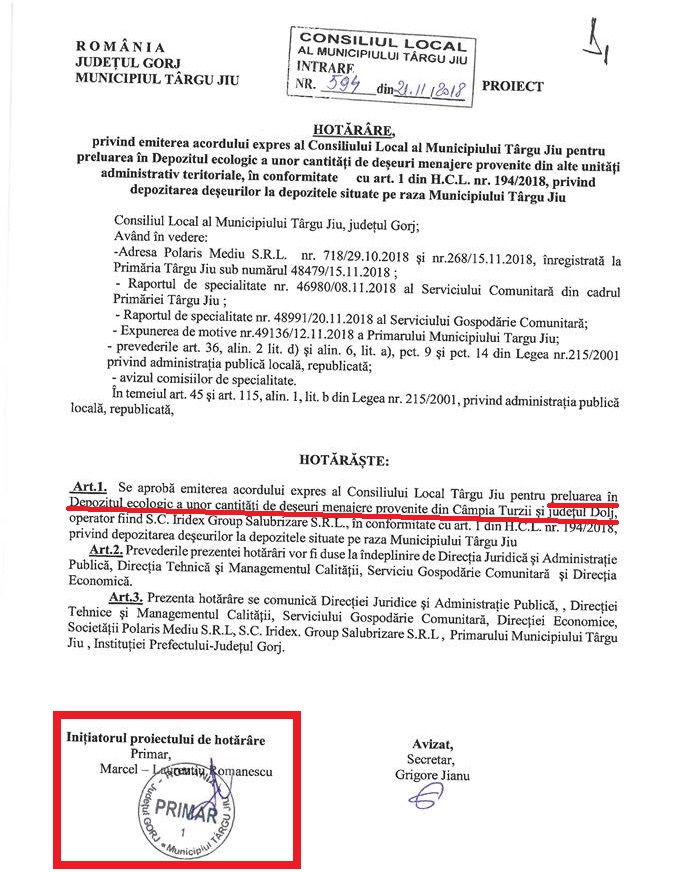 Din păcate, noul primar, Marcel Romanescu, s-a poziționat mereu de partea grupului de firme POLARIS și împotriva Târgu Jiului.