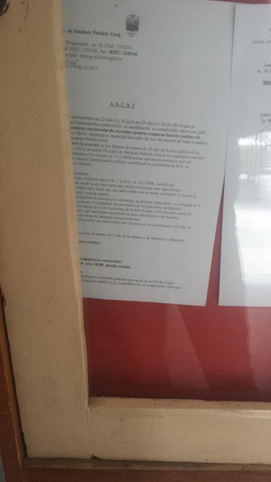Una din sursele noastre a sunat la DSP și a întrebat de ce anunțul nu este și pe site-ul instituției, și i s-a răspuns, atenție!, că urmează ca acel anunț să fie înaintat unei firme private care are contract de postare a anunțurilor pe site-ul DSP Gorj!!! Interesant mod de cheltuire a banilor publici. Cât de nepregătiți îi consideră Boeriu pe subordonații săi, dacă a fost capabil să externalizeze, pe bani publici, până și postarea unor banale anunțuri?